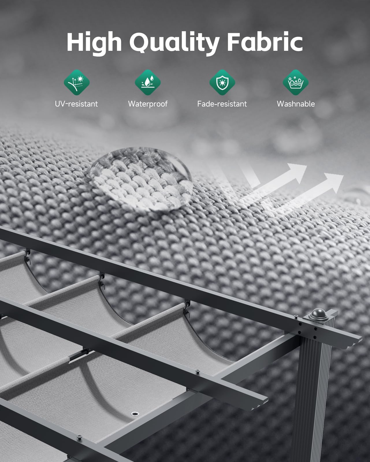- 【Easy Assembly】Aluminium pergola equipped with detailed instructions and complete accessories, 2-3 people together assembly will be better. Note: It is not recommended to use in extreme weather, such as storms or gale, you can fully retract pergolas for gardens canopy when not in use.