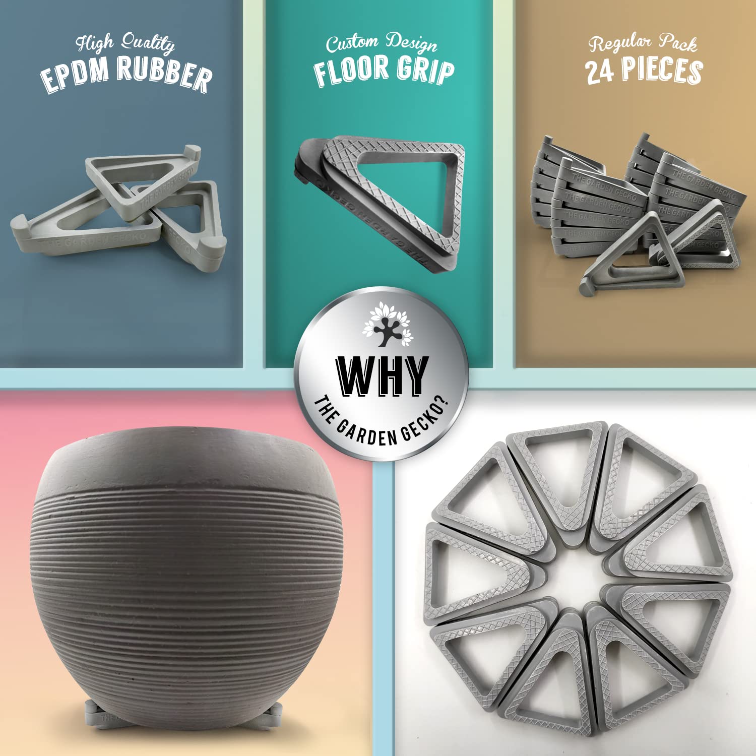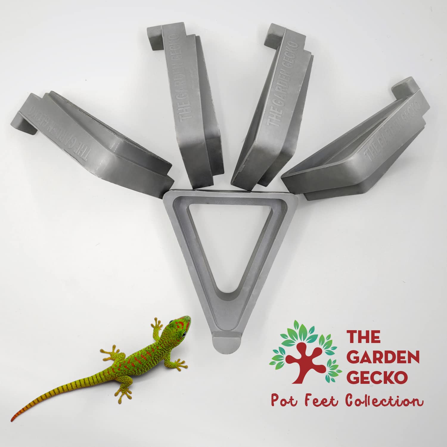 The Garden Gecko Pot feet for outdoor plant pots and flowers, solid rubber pot risers with a custom non-slip surface grip | 24 Triangle Hollow Pot-Toe Pcs | GREY WISP