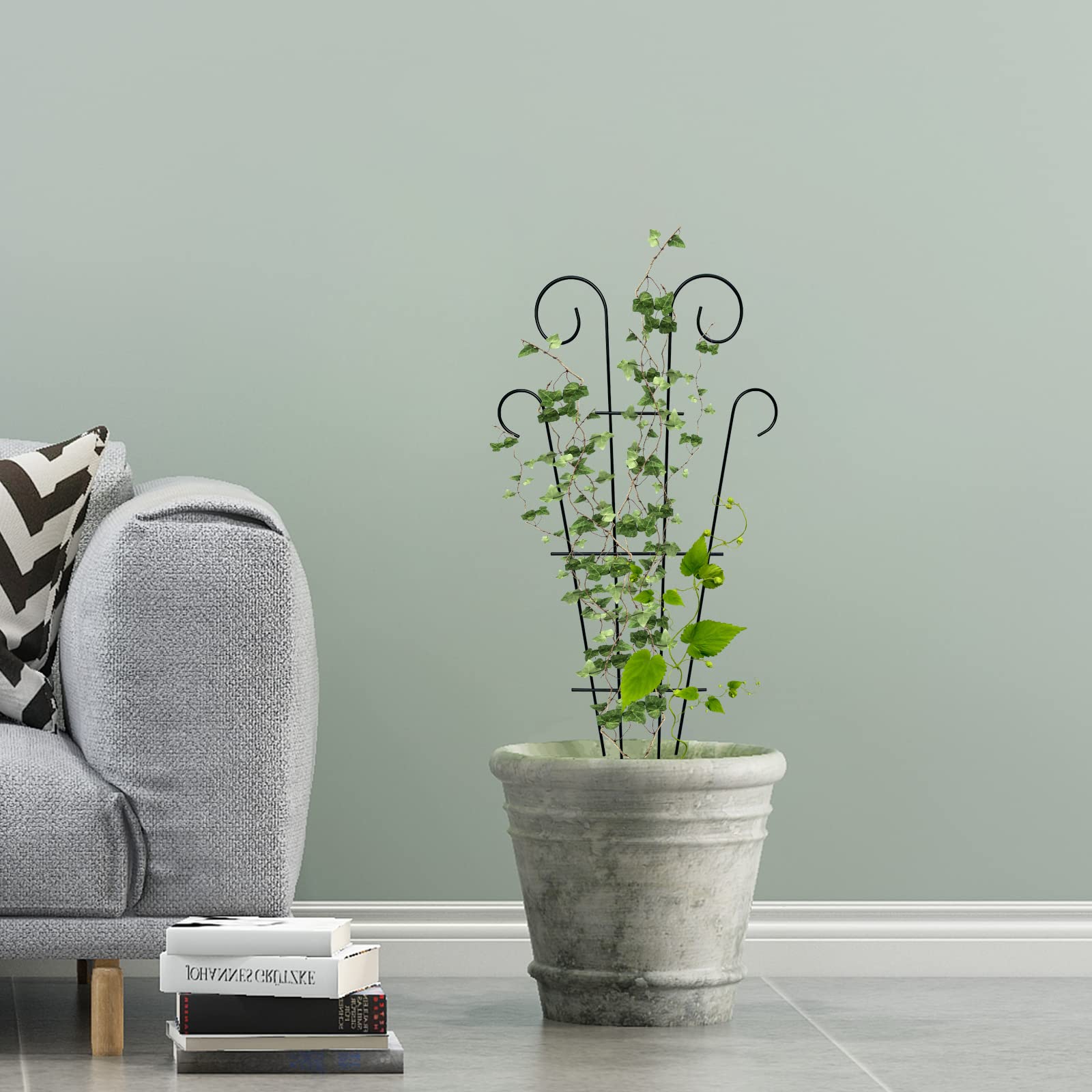 Thealyn 4 Pack Indoor/Outdoor Metal Plant Trellis, 81cm/32 in - Garden Trellis for Climbing Plants, Potted Houseplants, Flowers, Vines, Ivy - Wave Design, Black, for Patio, Yard, or Home