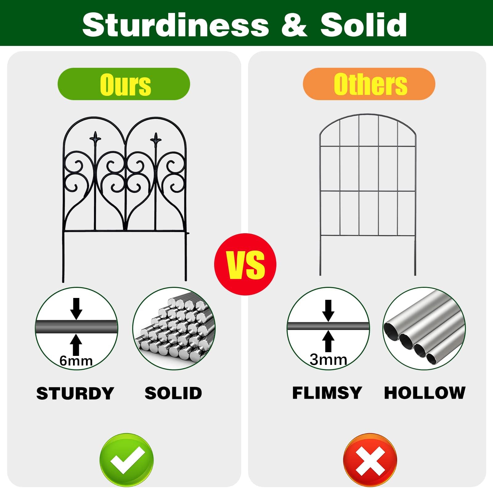- 【Wide range of uses】Create an elegant and functional border around your plants or walkways, or simply add a section for architectural interest around your patio. This small Iron fence can be used as yard landscape edging fence,such as path edging fence, garden border fence, folding fence, tree guard,flowerbed border, vegetable border fencing,etc. Also can be used as small animal pet barrier