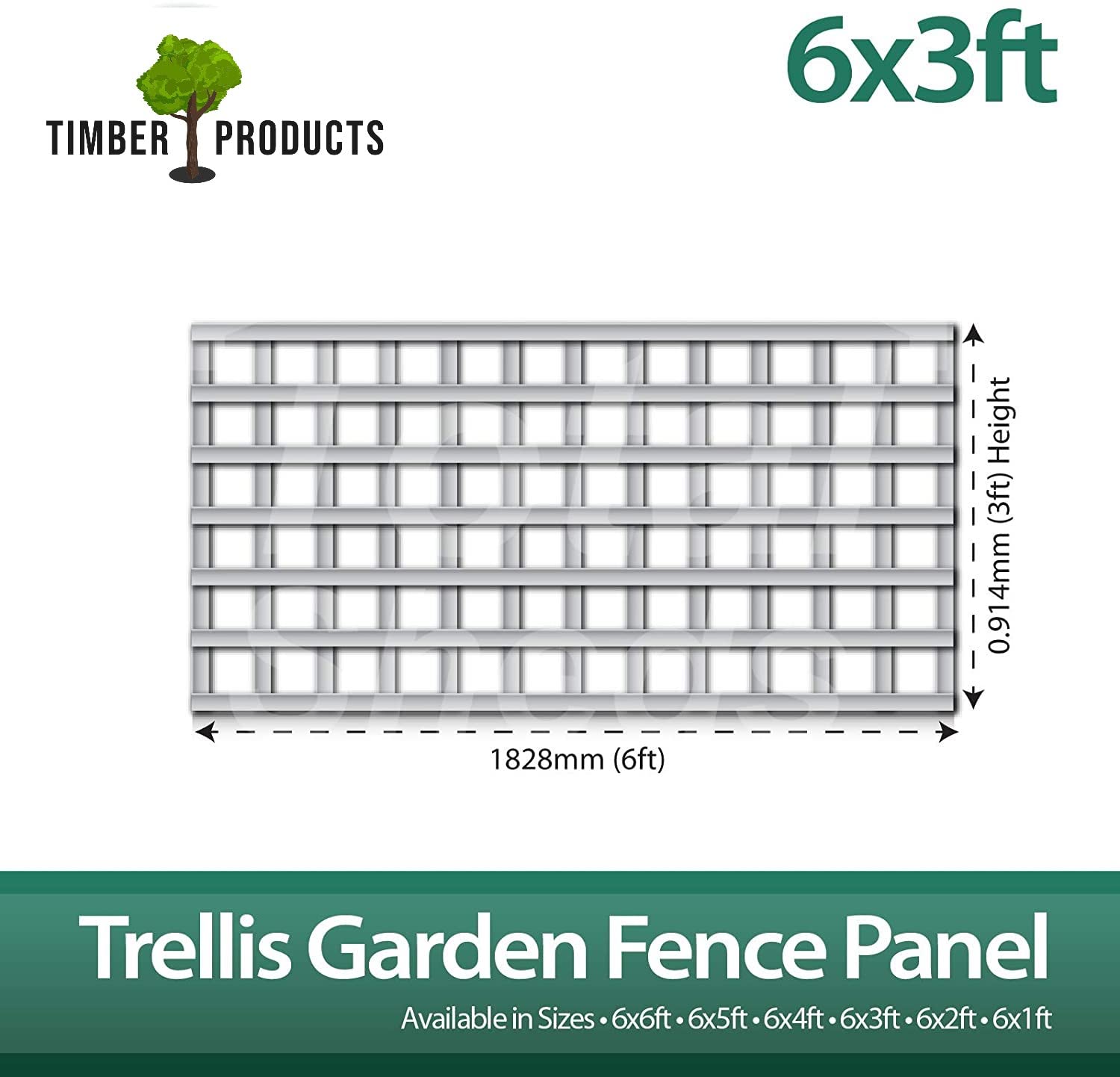 Details: PACK OF 10 TIMBER PRODUCTS 6x3 (1.83m x 0.91m) 6ft x 3ft TRELLIS SQUARE FENCE PANELS