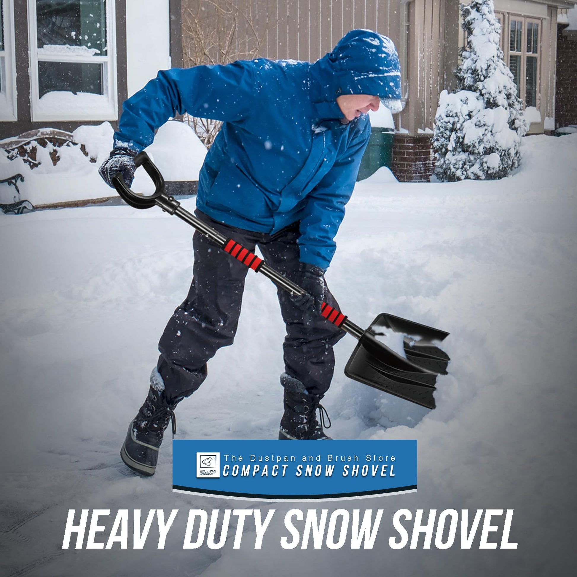 - Heavy Duty Snow Shovel - This tough and long-lasting snow pusher shovel with an extended handle is great for both home and business use. Shovel snow tool has strong build and big scoop can handle any snow clearing job, making snow spade a dependable tool for both personal and professional use.