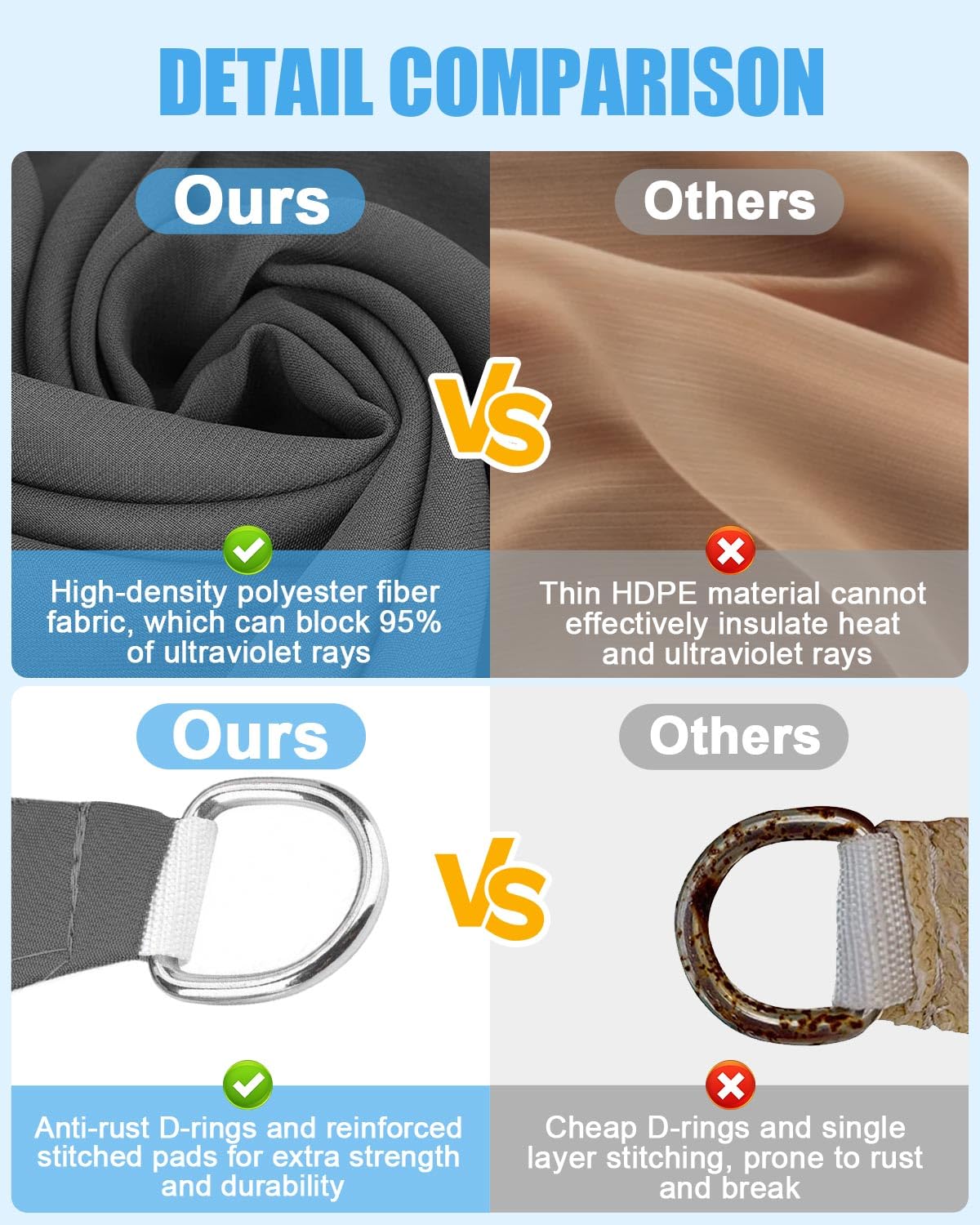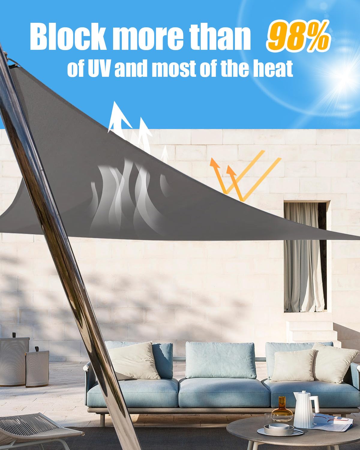 - ⛱️UV Protection: Designed to shield your garden with 98% UV ray protection and a shading rate of 90%, our sun shades create a cool oasis, reducing ambient temperatures naturally and cutting down on energy costs. Crafted to offer a comfortable and tranquil area, they invite relaxation and enjoyment, allowing you to bask in the outdoors without worry.