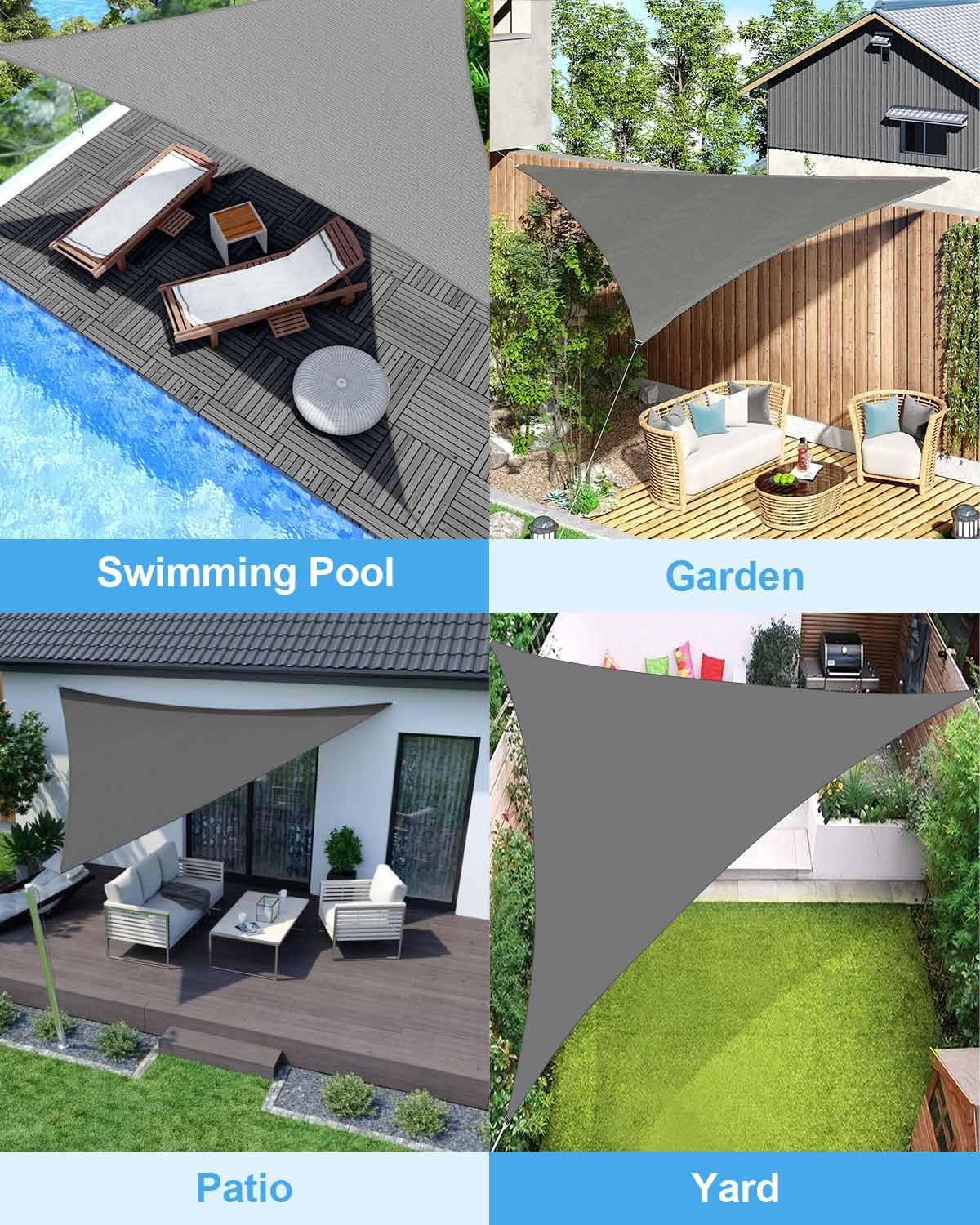 - ⛱️Practicality: Versatile and functional, our sun sail shade finds application across various outdoor settings such as gardens, patios, lawns, pools, forests, hills, and carports. Whether seeking relief from the scorching sun or simply creating a shaded retreat, it offers a cool and comfortable environment. Consider it as a thoughtful gift for loved ones or fellow enthusiasts, allowing them to indulge in the pleasures of shaded relaxation.