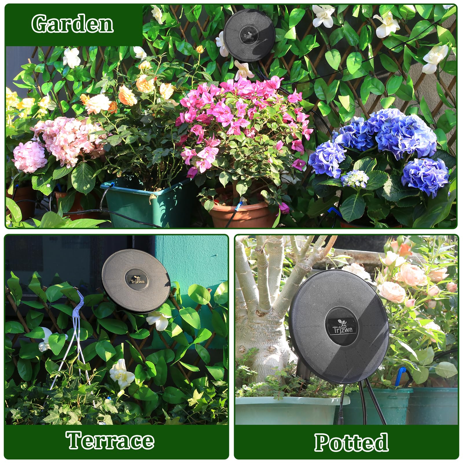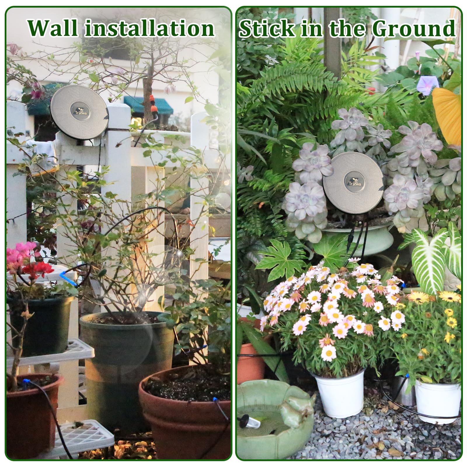 - [Indoor and outdoor use]This plant watering system can be used indoors and outdoors.The solar panels can be rotated to receive more light.Rainy days will not affect the use of the irrigation system,the solar watering system can be inserted into the soil or mounted on the wall and is suitable for greenhouses,balconies,gardens,walls,terraces and patios.