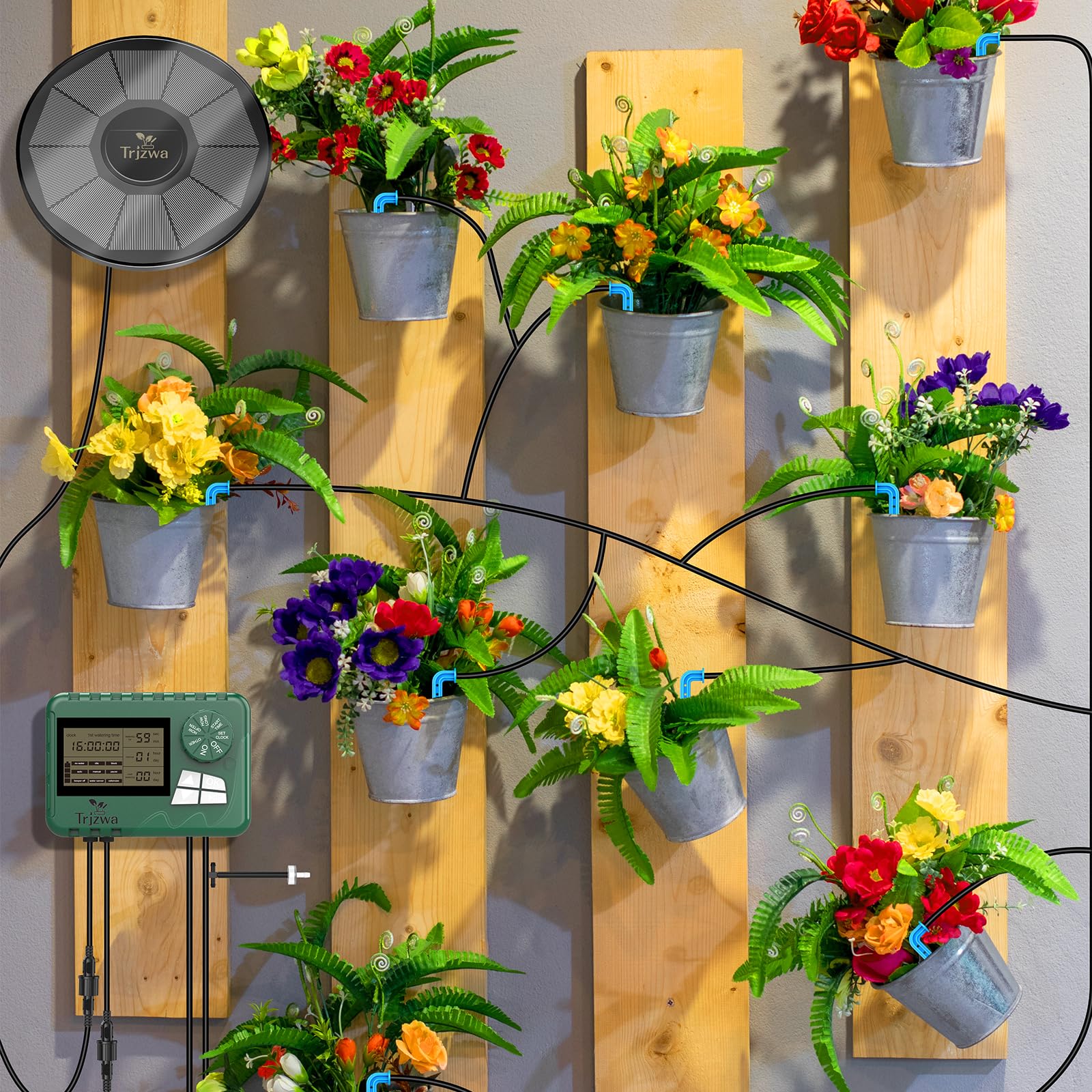 - [Irrigation system kit]This plant watering device uses solar power supply technology.The solar panels can store electrical energy.You can set a program that matches the watering duration and watering interval of the plants.The irrigation system will automatically water the plants.It is specially designed for plant lovers during holidays and busy schedules.