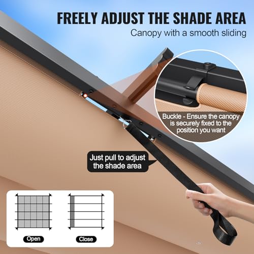 - Adjustable Shade Canopy: Equipped with an adjustable retractable canopy and built-in sliding track design, you can easily adjust the shade area to suit your needs. Whether you require shade on hot summer days or protection from light rain, this pergola provides optimal comfort, allowing you to enjoy the perfect balance of sun and shade.