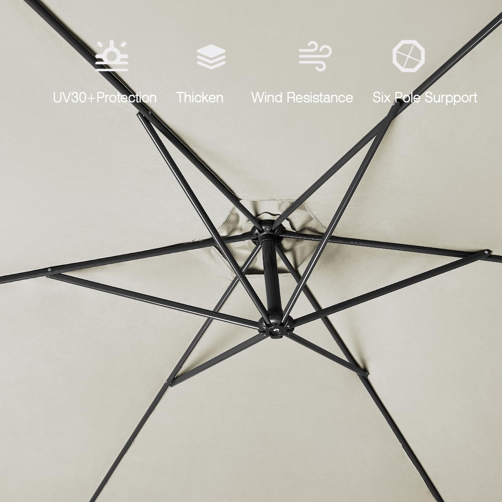 Vivo Technologies 3m Cantilever Garden Parasol, Banana Patio Umbrella Freestanding Parasol Hanging Parasol with Crank Handle and Tilt for Outdoor Garden and Patio Sun Shade Cream