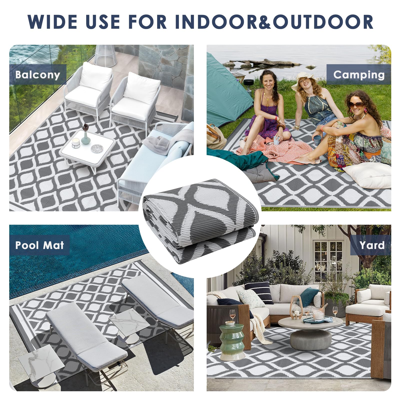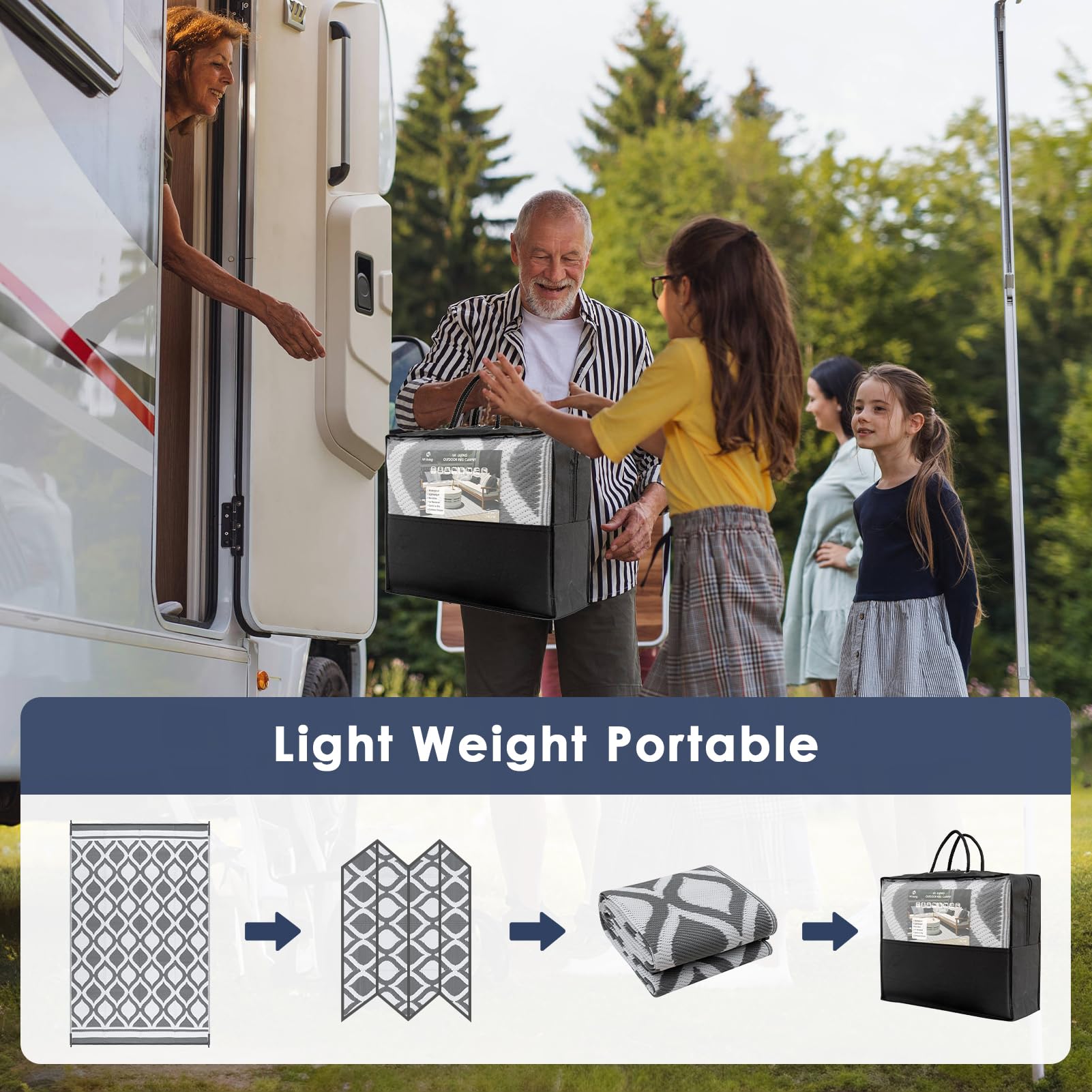- Versatile: Portable outdoor patio rug can be easily folded and stored in the included storage bag, are very lightweight and convenient to transport. Perfect for patio, deck, garden, beach, camping or RV scenes