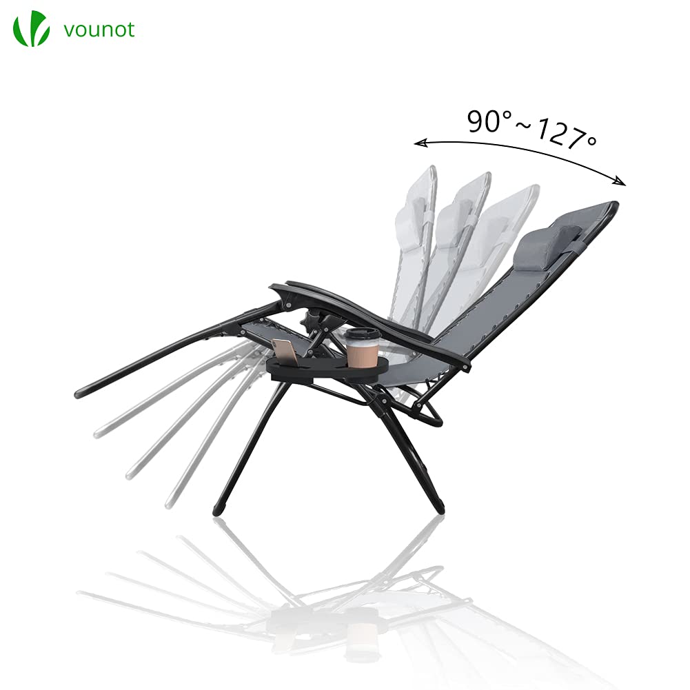 VOUNOT® Set of 2 Zero Gravity Sun Loungers, with Cup Holder and Phone Hoder, Adjustable Textoline Reclining Garden Chairs, Grey
