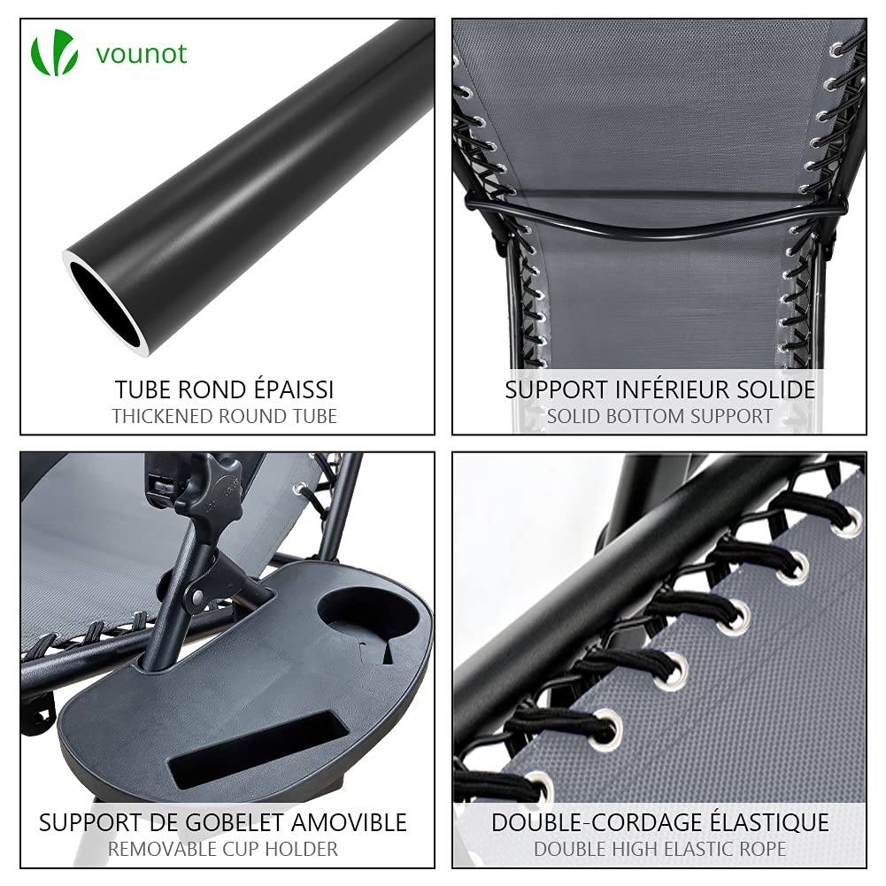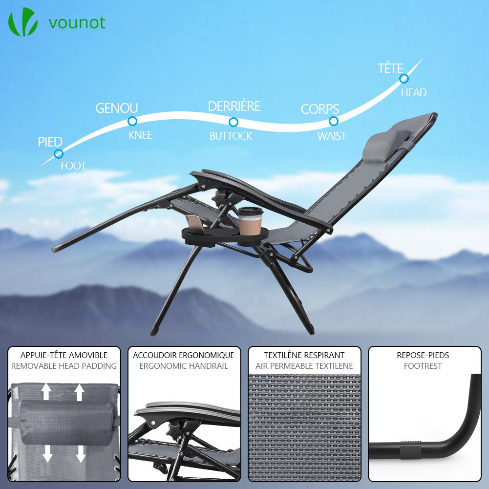 Details: VOUNOT Set of 2 Zero Gravity Sun Loungers, with Cup Holder and Phone Hoder, Adjustable Textoline Reclining Garden Chairs, Grey