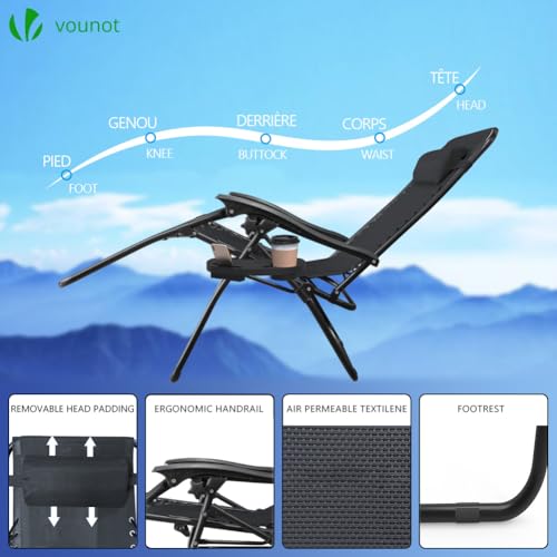 - Without pressure on your spine, let your body experience comfort and stress relief sensation with Vounot zero gravity chairs. our weightless chairs can be fully adjusted to meet different needs. The mesh design ensures breathability without heat build-up during holiday season.