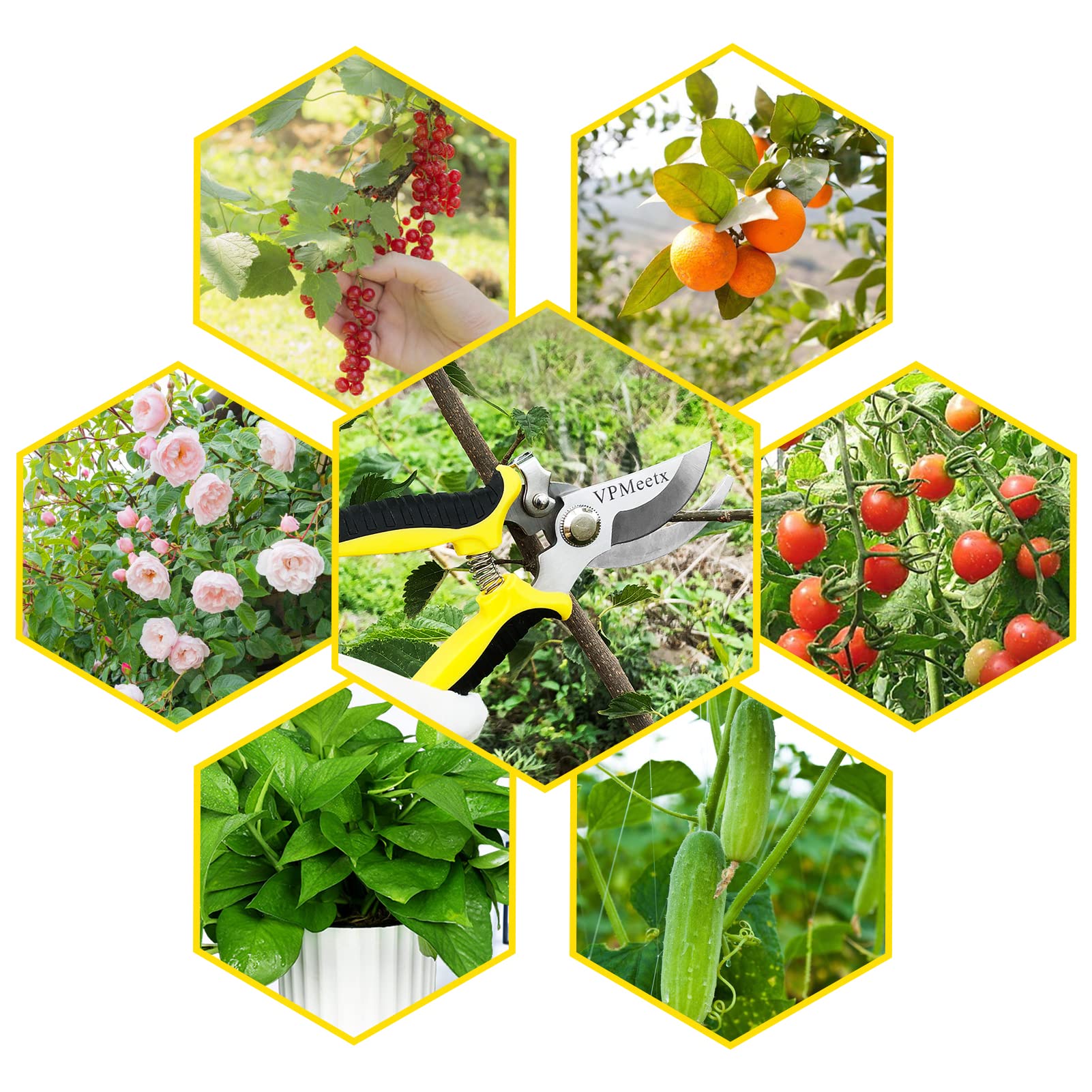 VPMeetx Secateurs Pruning Scissors - Professional High Carbon Alloy Steel Garden Shears Bypass Pruning Shears Lightweight Hand Pruner with Locking Mechanism (Yellow Secateurs)