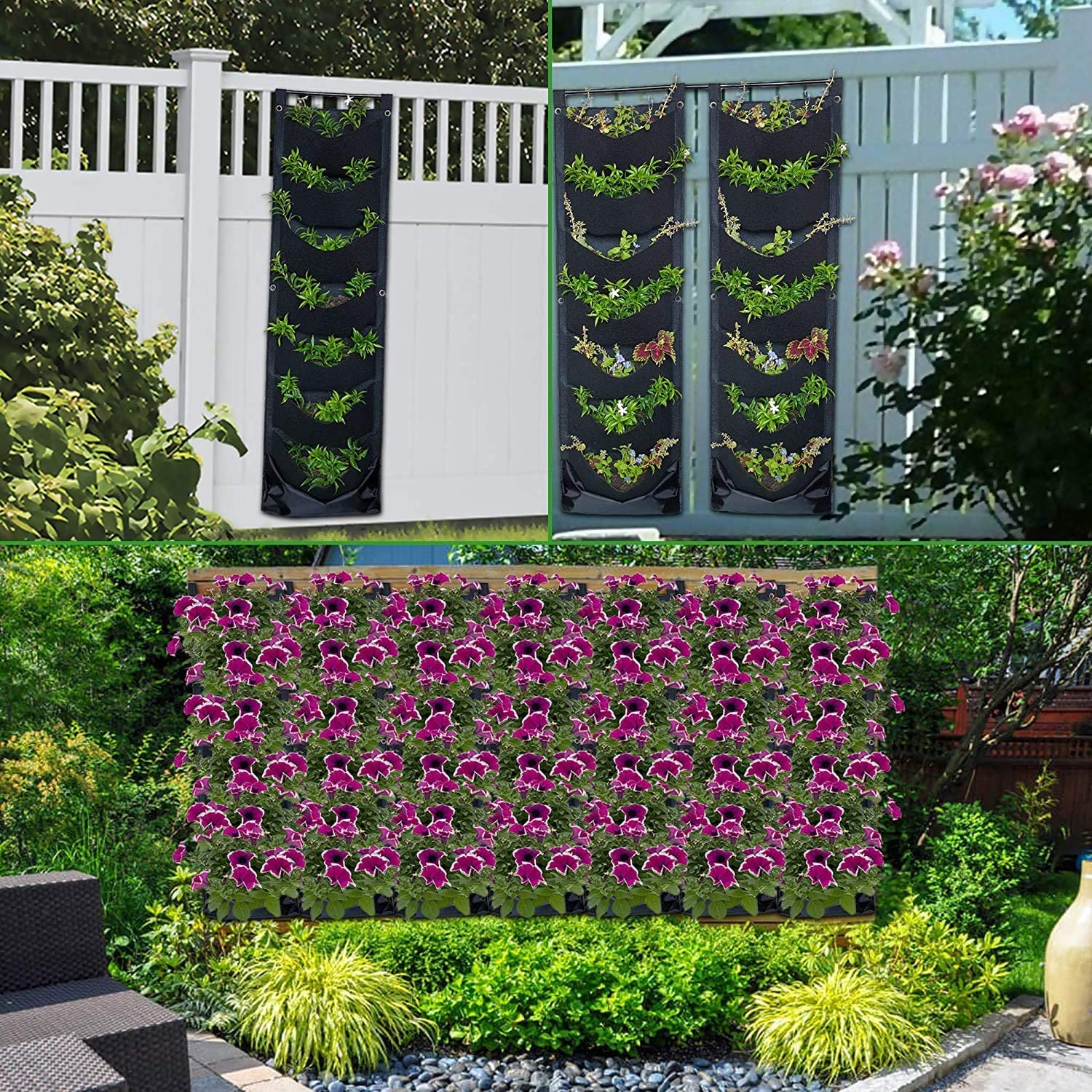 - [7 Pockets] Widened and deepened 7 pockets provide enough growth space for plants and get enough sunlight to keep the vegetation healthy. Turn unused or ugly areas into vibrant lush vertical gardens