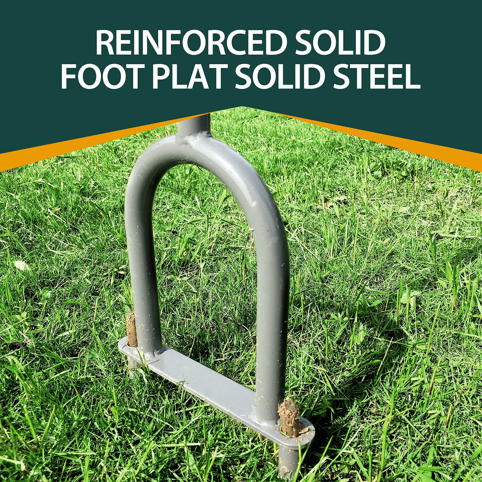 - Ingenious Design: Our manual lawn aerator with foot bar provides an extra leverage. The “T” BAR handle is convenient to grip and provides a more comfortable stance while aerating. And the foot bar leverage can greatly reduce your back stain. The tool is much effort-saving and can make your garden work more effective.