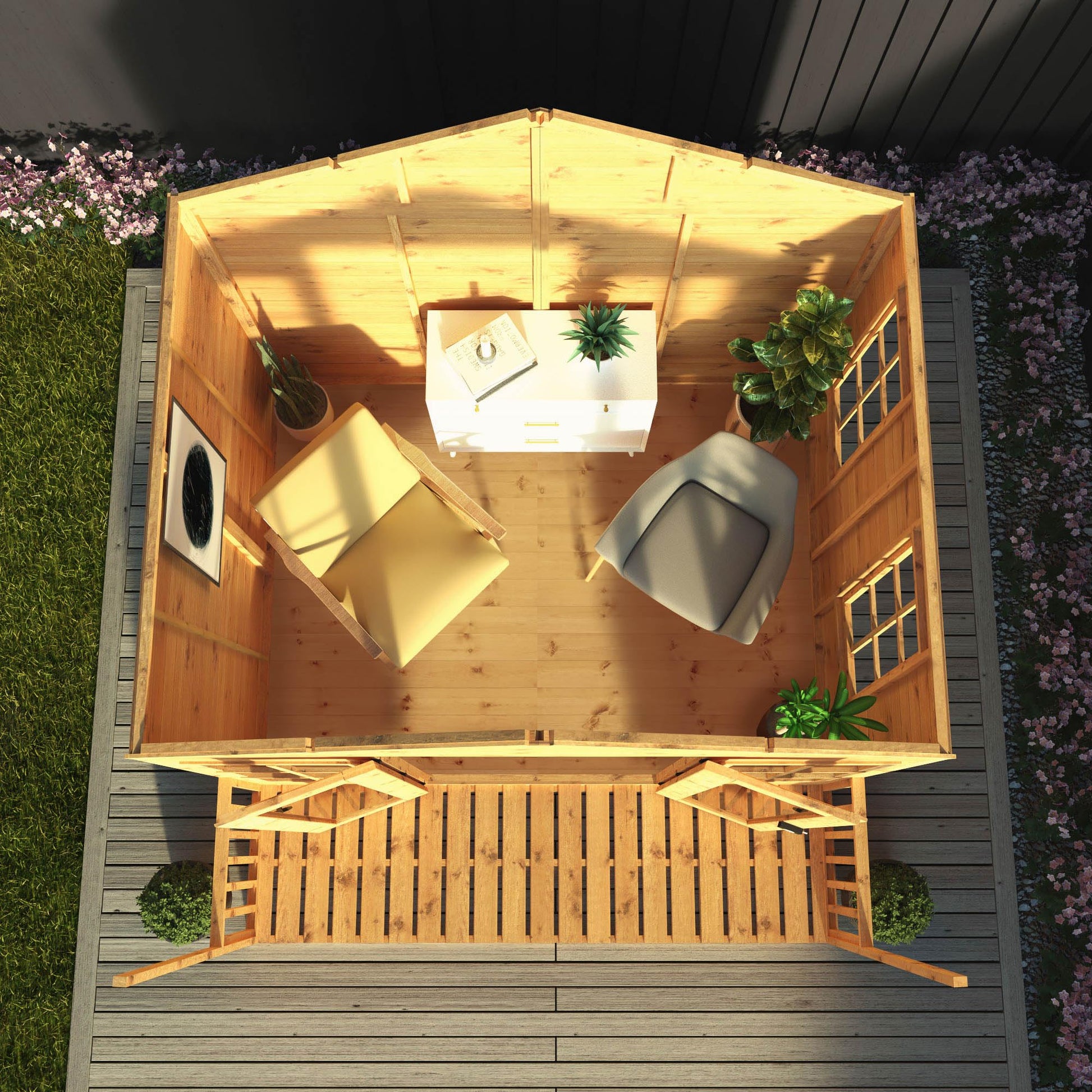WALTONS | 8 x 8 Wessex Summerhouse with Veranda | Apex Roof | 12mm Shiplap Tongue and Groove | Wooden Garden Room Summerhouse | 10 Year Anti Rot Guarantee | 8 x 8 | 8ft 8ft |