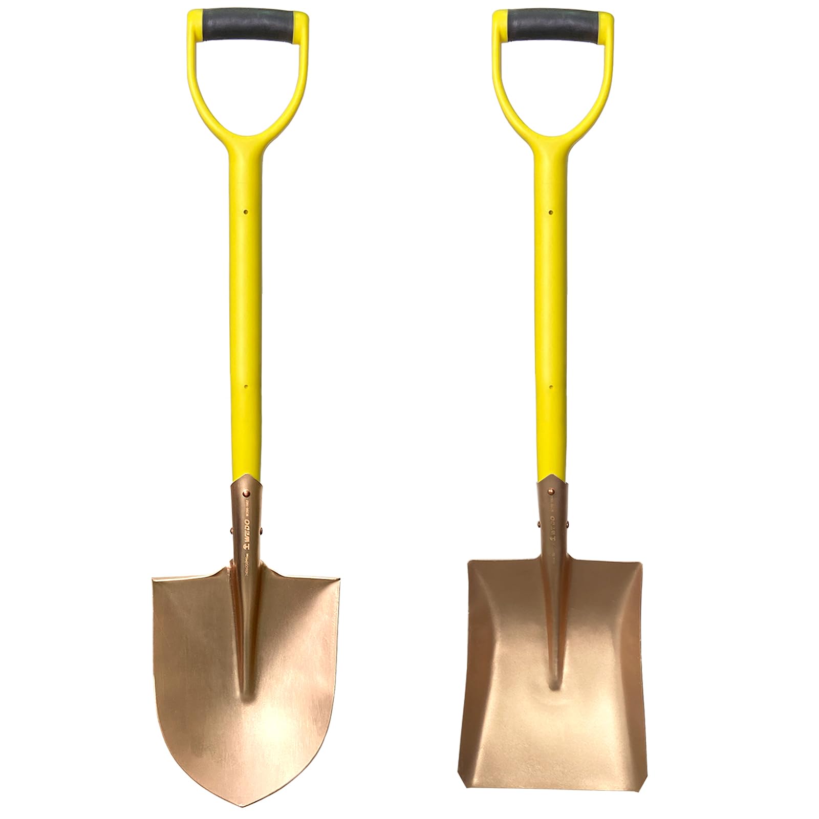 - High quality Raw Materials: Aluminum Bronze Square Shovel/Round Point Shovel is appropriate for operation with ethylene concentration below7.8%. Standard Code GB ExⅡB. Hardness: 20-30 HRC. Beryllium Copper Round Point Shovel/Square Shovel is suitable for hydrogen operation with concentration below 21%,standard code GB Ex IIC, hardness HRC30-40.Non-magnetic.