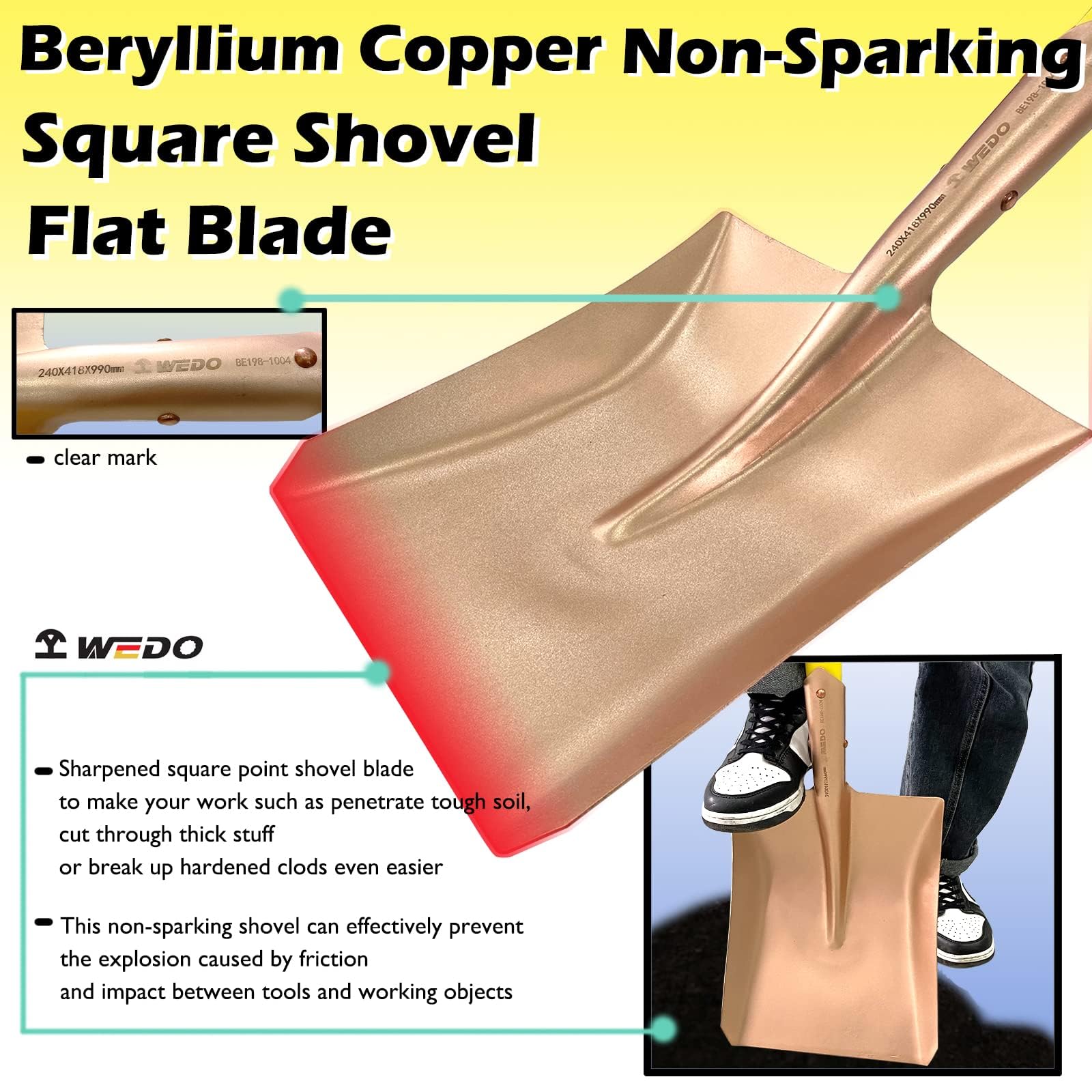 WEDO Non-Sparking Square Shovel and Round Point Shovel Set,39"(990mm) Square Shovel,39"(990mm) Straight Blade Shovel,Beryllium Copper,Non-Magnetic,Non-Slip Handle,DIN Standard,BAM&FM Certificate
