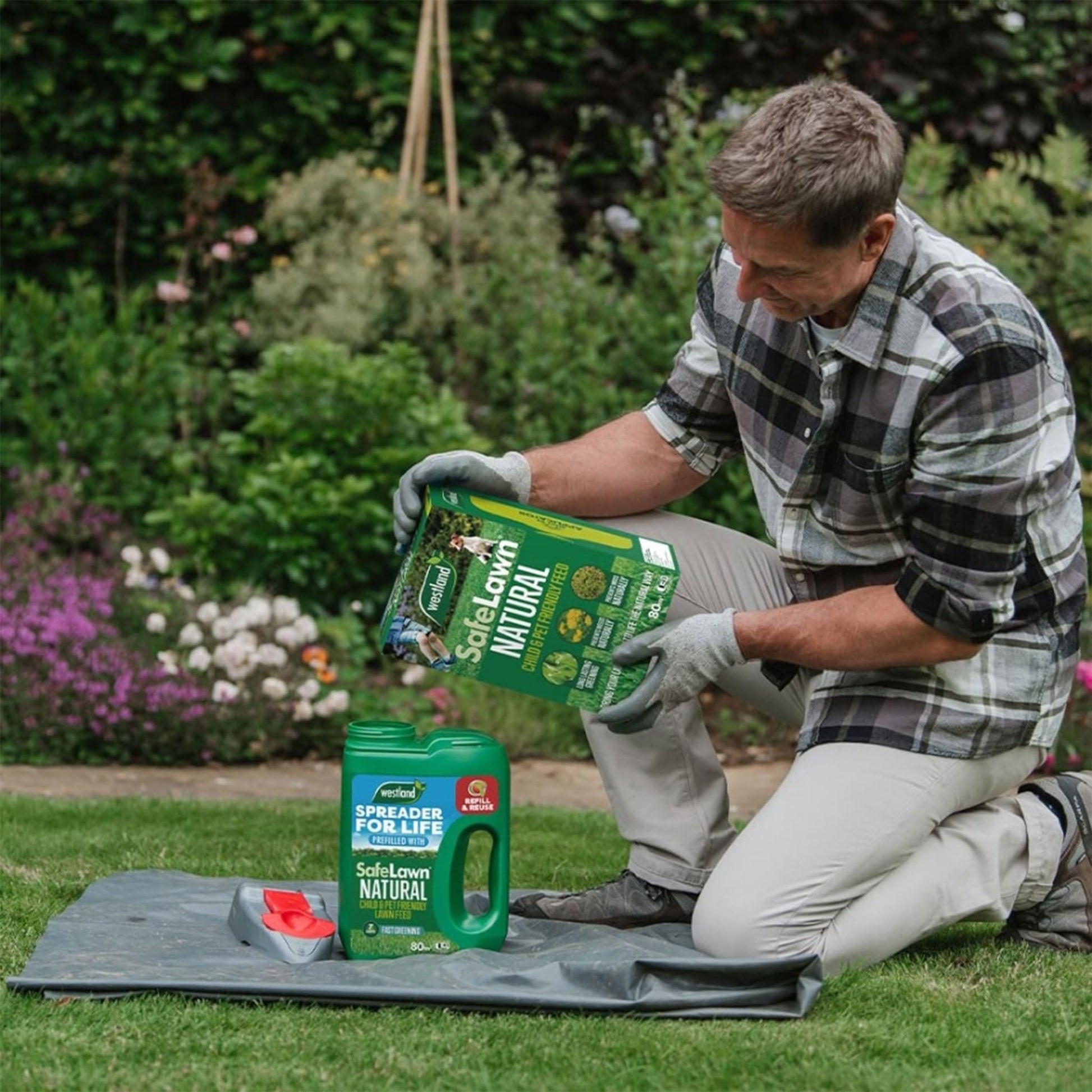 Westland Safelawn is a fertiliser made using only natural ingredients. It includes friendly bacteria to help break down dead moss, grass material, thatch and dead leaves into nutrients to help your lawn. SafeLawn’s nutrient package greens and thickens the lawn in just three days.