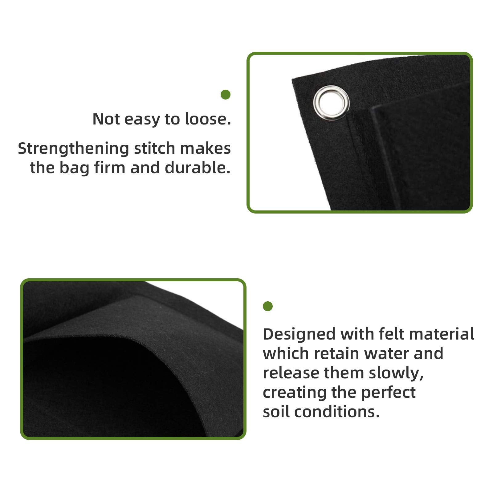 - 【Wide Application】This hanging planter is perfect for household decoration, greening projects, nursery production. You can hang it in the bedroom, living room, porch, garden, on the wall, door, and many other places. It can create vibrant and wall garden by hanging several growing bags side by side.