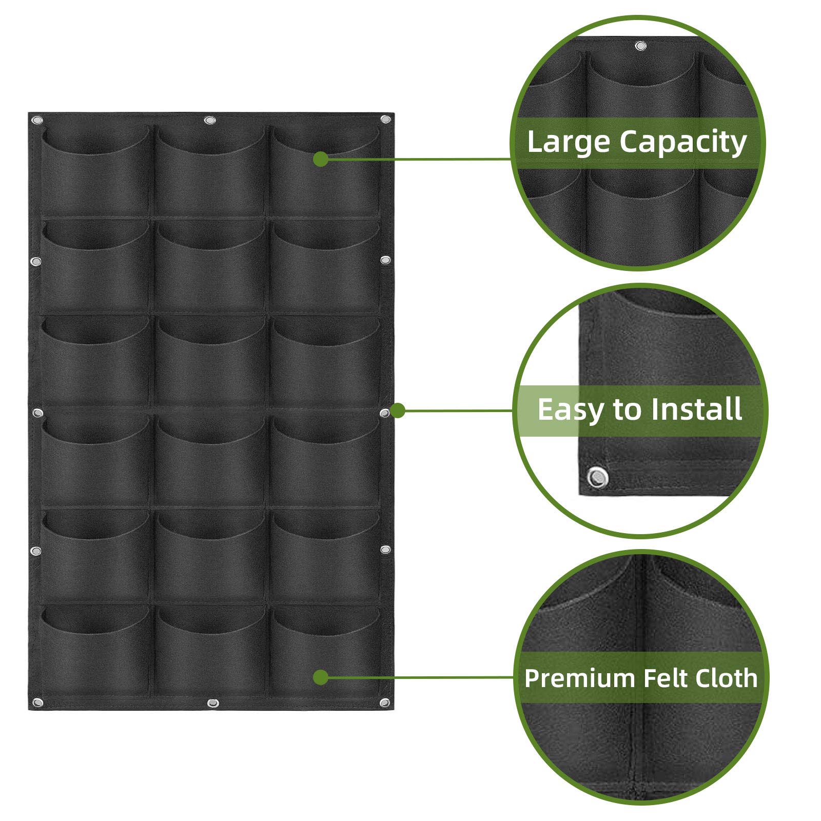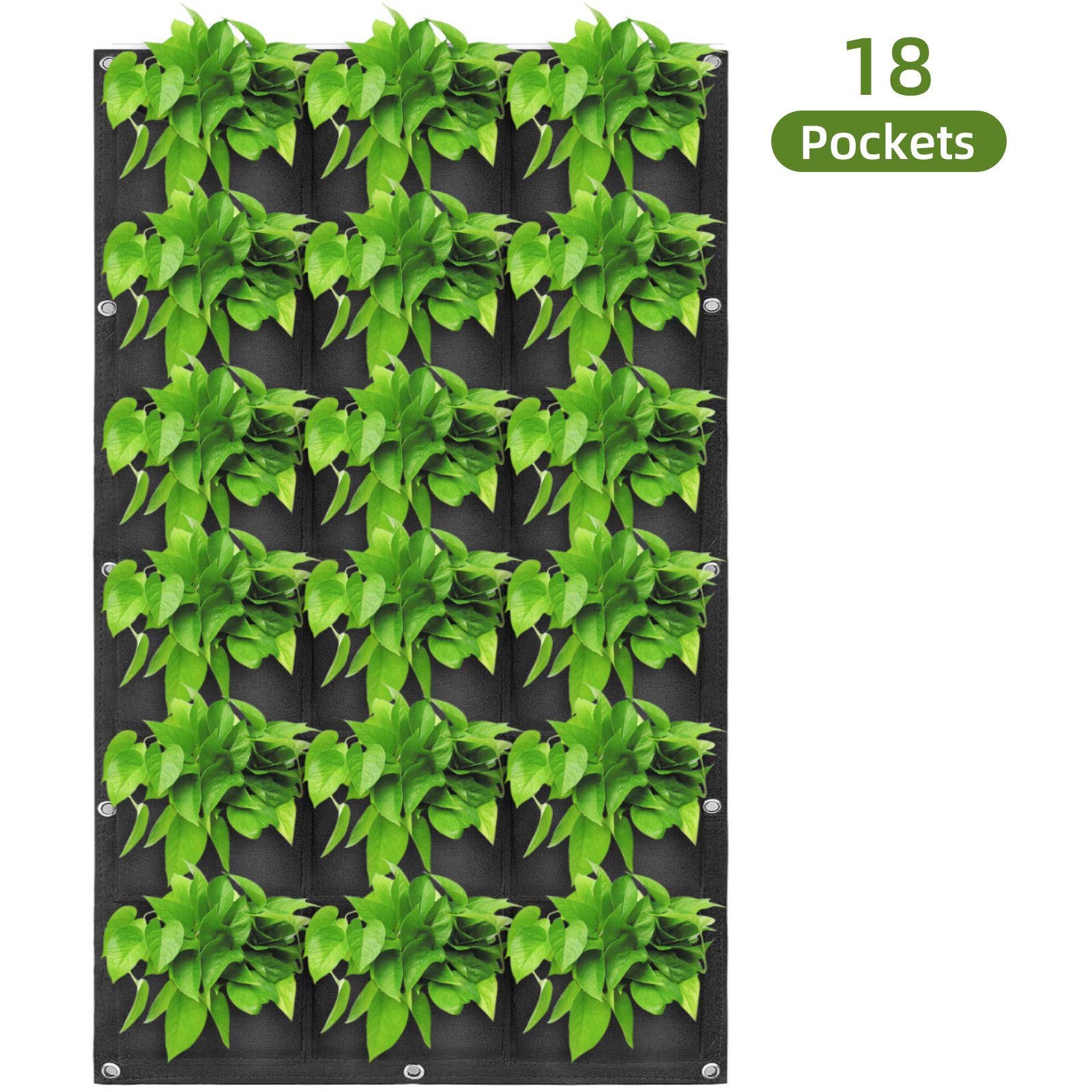 WHATWEARS Hanging Planting Grow Bags, 18 Pockets Hanging Vertical Wall Planter Wall Mounted Grow Bag Outdoor Indoor Gardening Vertical Greening Flower Container, Planting Bags(1.0 m × 0.5 m, Black)