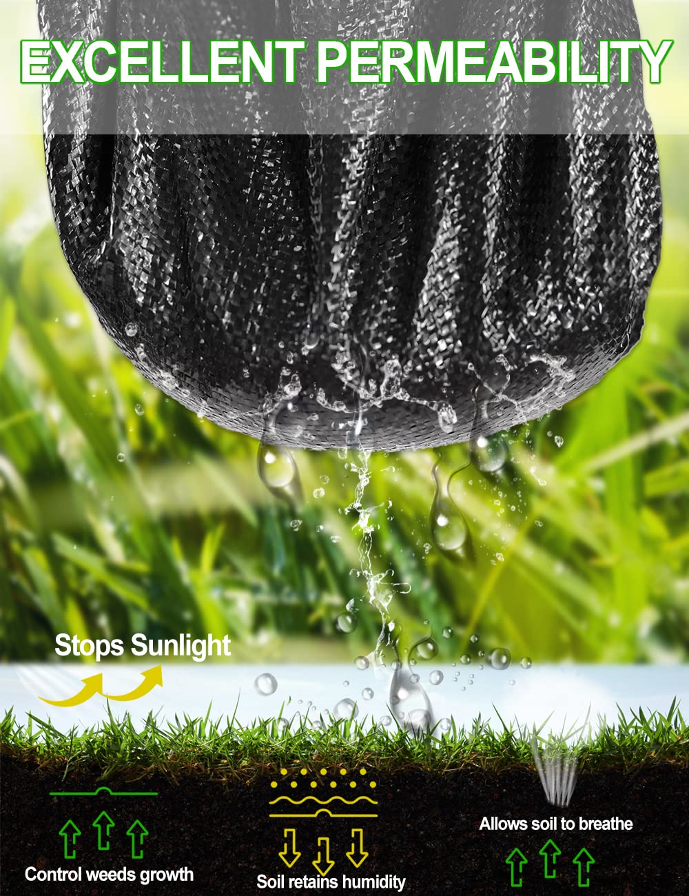 - 3.2OZ Durable Weed Membrane: Our heavy-duty weed barrier is dade of thick polypropylene woven fabric, strong and durable. This premium material in high strength can be used for a long time and keeps your garden rid of most weeds.
