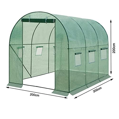 - LARGE SPACE: The walk-in greenhouse measures 200x300x200cm (WxDxH). You'll have an area of 6m2 for growing your plants. The sufficient height allows you to place taller plants, or hanging baskets, vines, etc