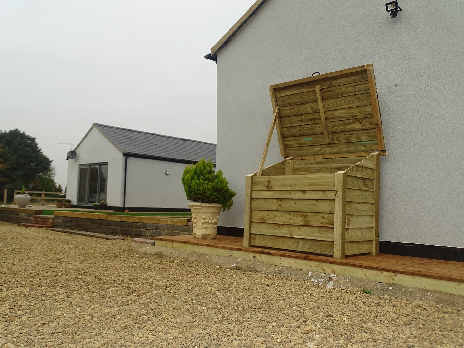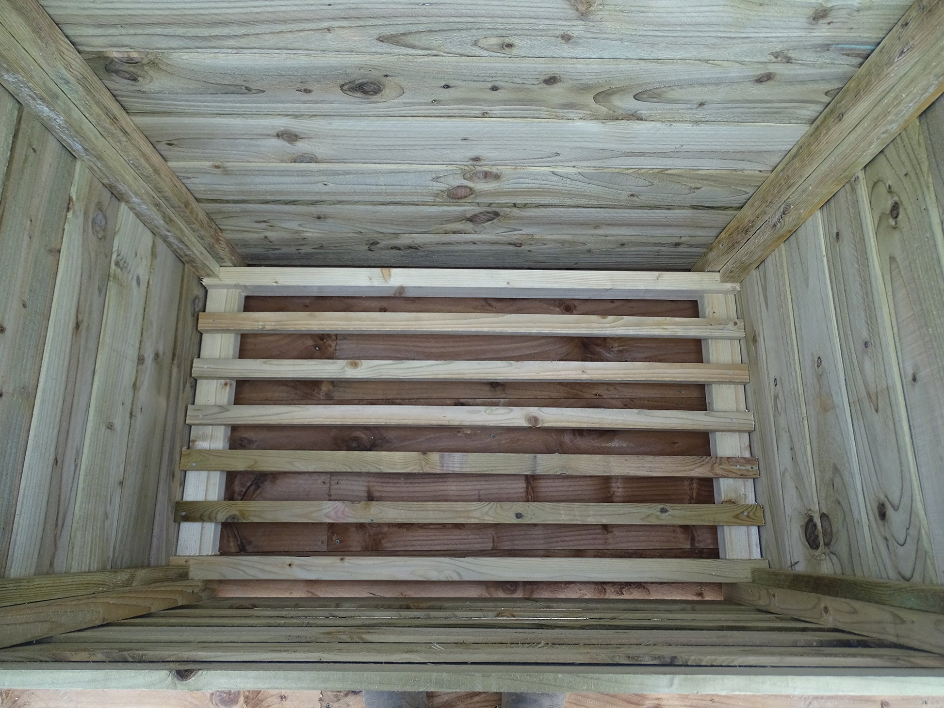 - Frame constructed from heavy duty pressure treated timber. Roof and panels constructed from featheredge boards.