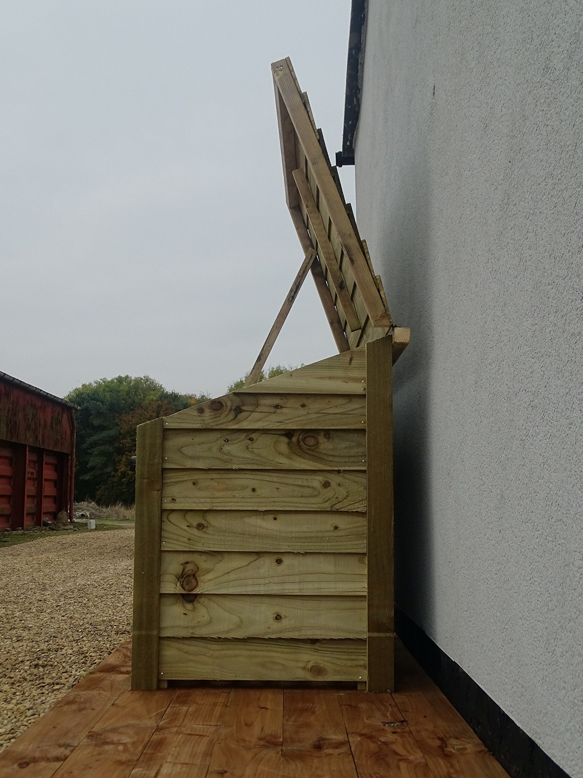 - Raised base to reduce the risk of ground damp causing damage. Lower rear panel to allow for ventilation.