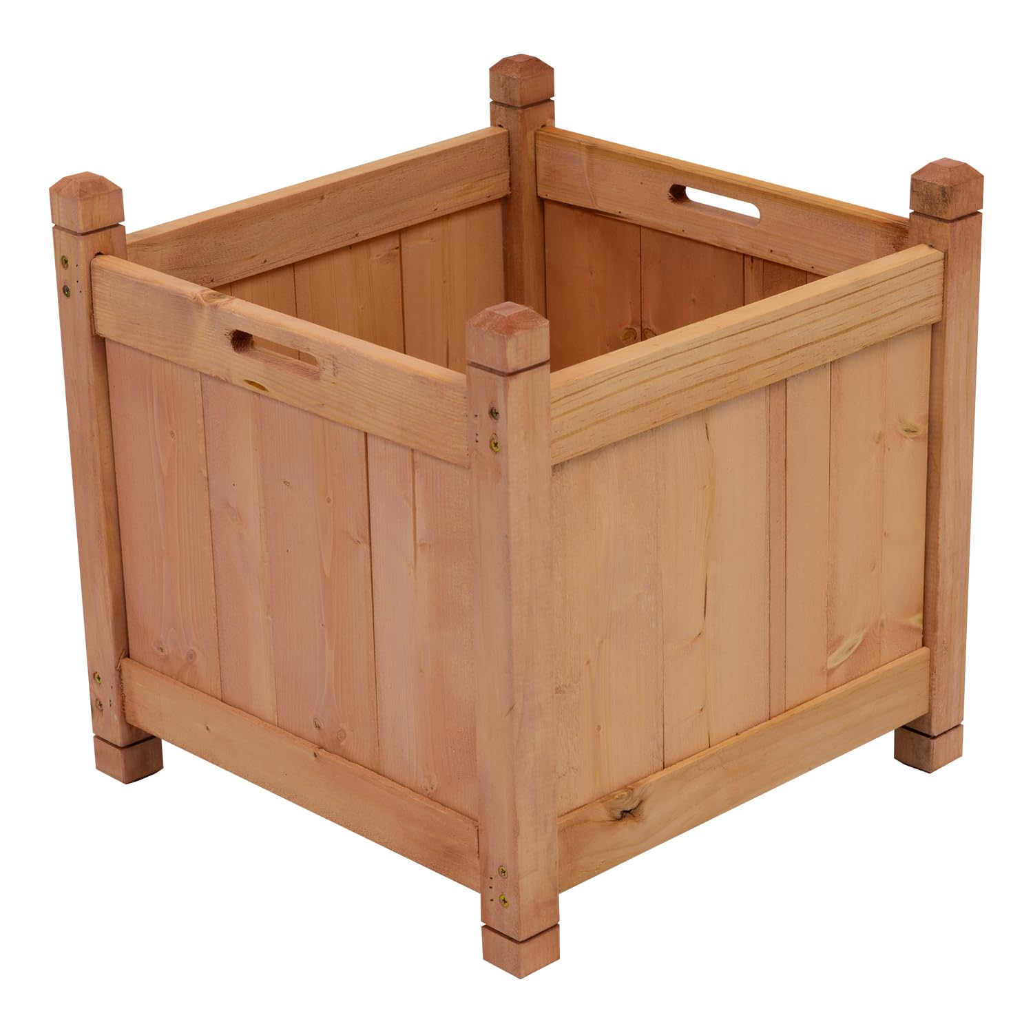- SPECIFICATIONS – Material: Fir Wood. Size: 43x43x38/43cm, 3.5x3.5cm post. Includes 2 plastic liners