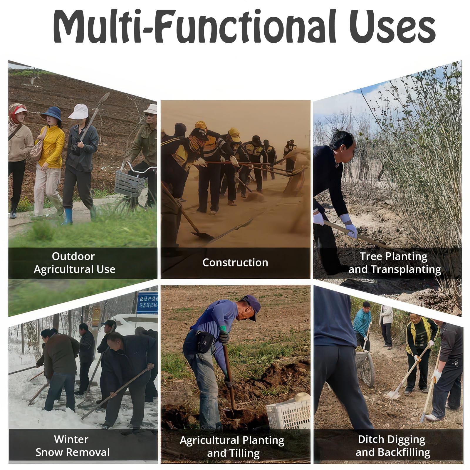 - 【Versatile Tool for Multiple Uses】Whether it’s gardening, construction, or snow removal, our round and square shovels are perfect for any task. Their robust construction makes them ideal for moving soil, digging trenches, and even tree planting.