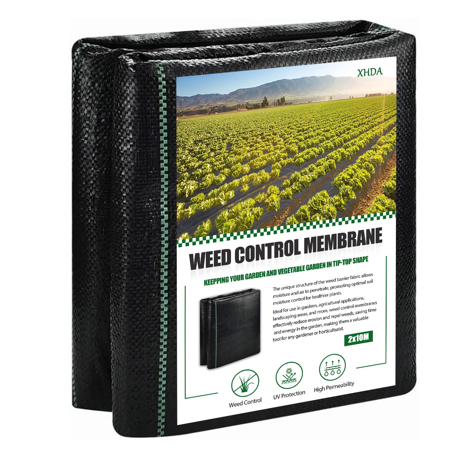 XHDA 2m x 10m Heavy Duty Weed Membrane, Garden Weed Control Barrier Fabric, Weed Suppressant Membrane for Ground Cover