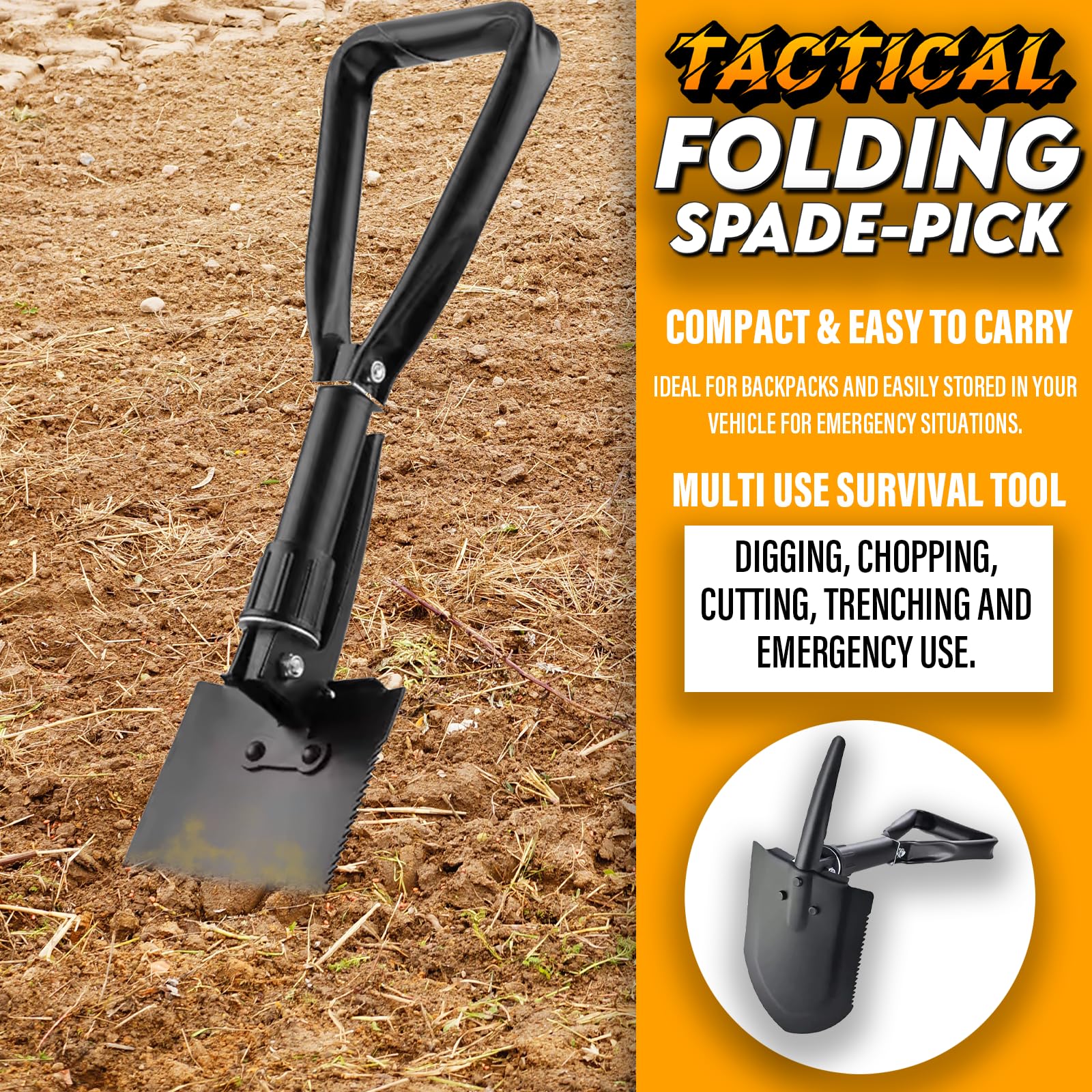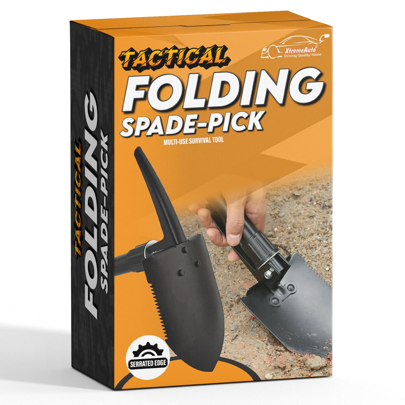 Xtremeauto Military Folding Shovel – 23'' Compact High-Carbon Steel Survival Shovel with Pick, Portable Multi-Tool for Camping, Hiking, Fishing, Emergency, Gardening, for Outdoor Enthusiast