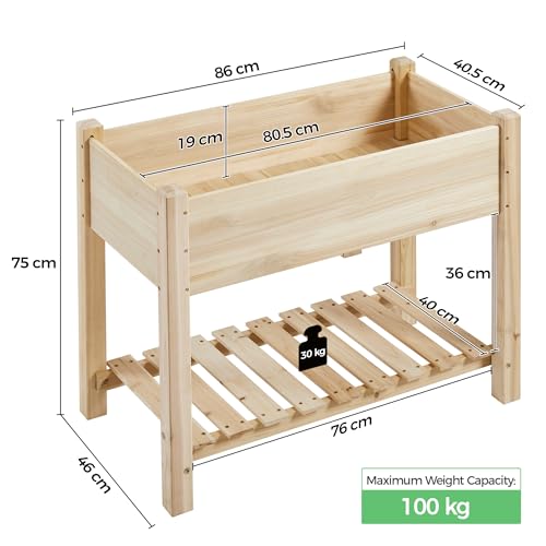Yaheetech Raised Garden Bed 2 Tiers Wooden Plant Raised Bed Garden Elevated Planter Box with Storage Shelf for Vegetables/Flowers/Herbs/Fruits,86 x 46 x 76cm