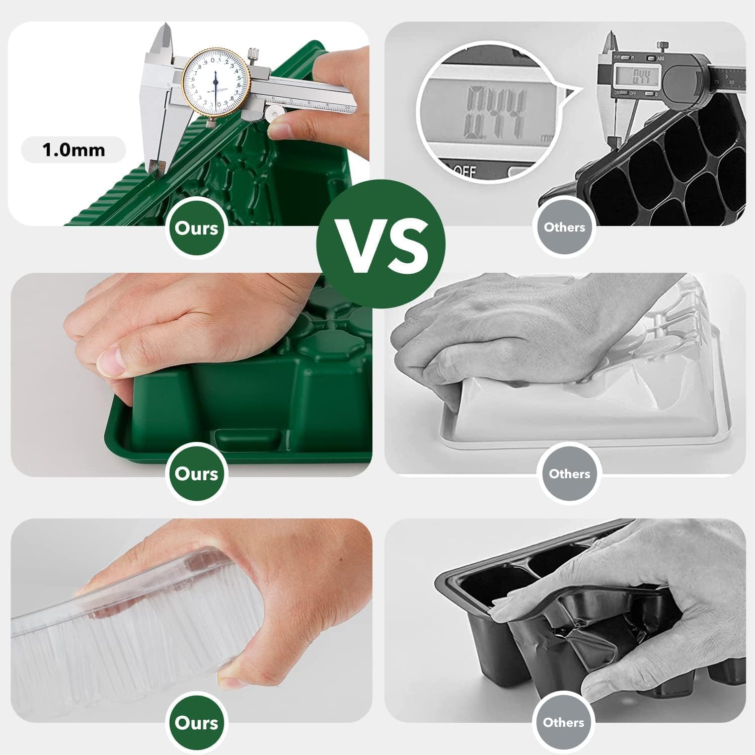 - Thicken 1.0mm Top-Quality BPA Free Plastic: Compare with other 0.5mm plastic material, our seed trays use double thicker materials for reusable, ultra-durable and not easily broken. with no harmful additives.