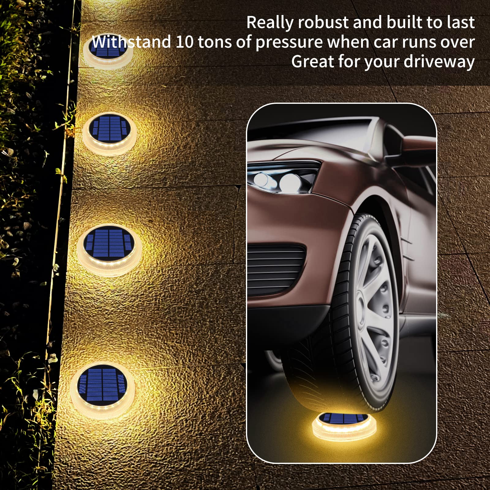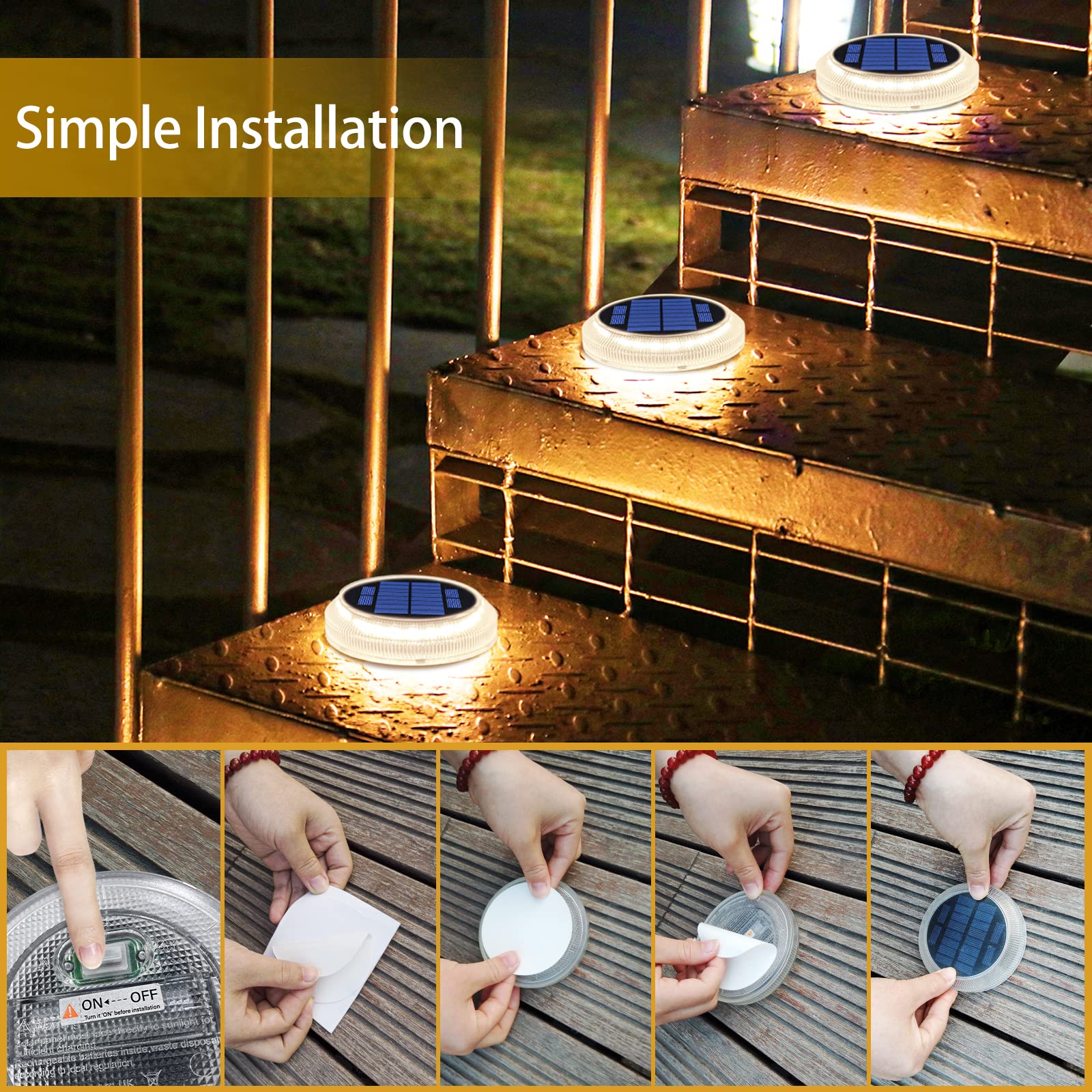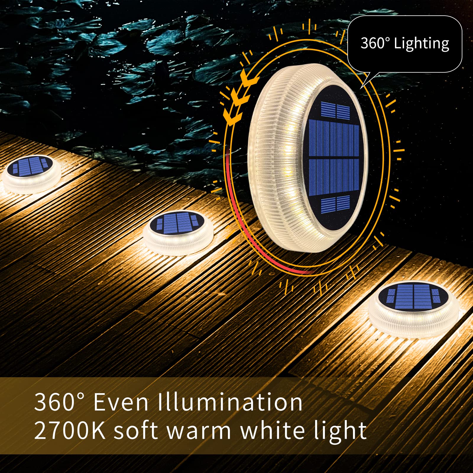 YiLaie Solar Decking Lights, Solar Step Ground Lights - 4 Pack, IP68 Waterproof Solar Lights Outdoor Garden for Walkway Decks Pathway Yard Stairs Fences Decorations [Warm White]