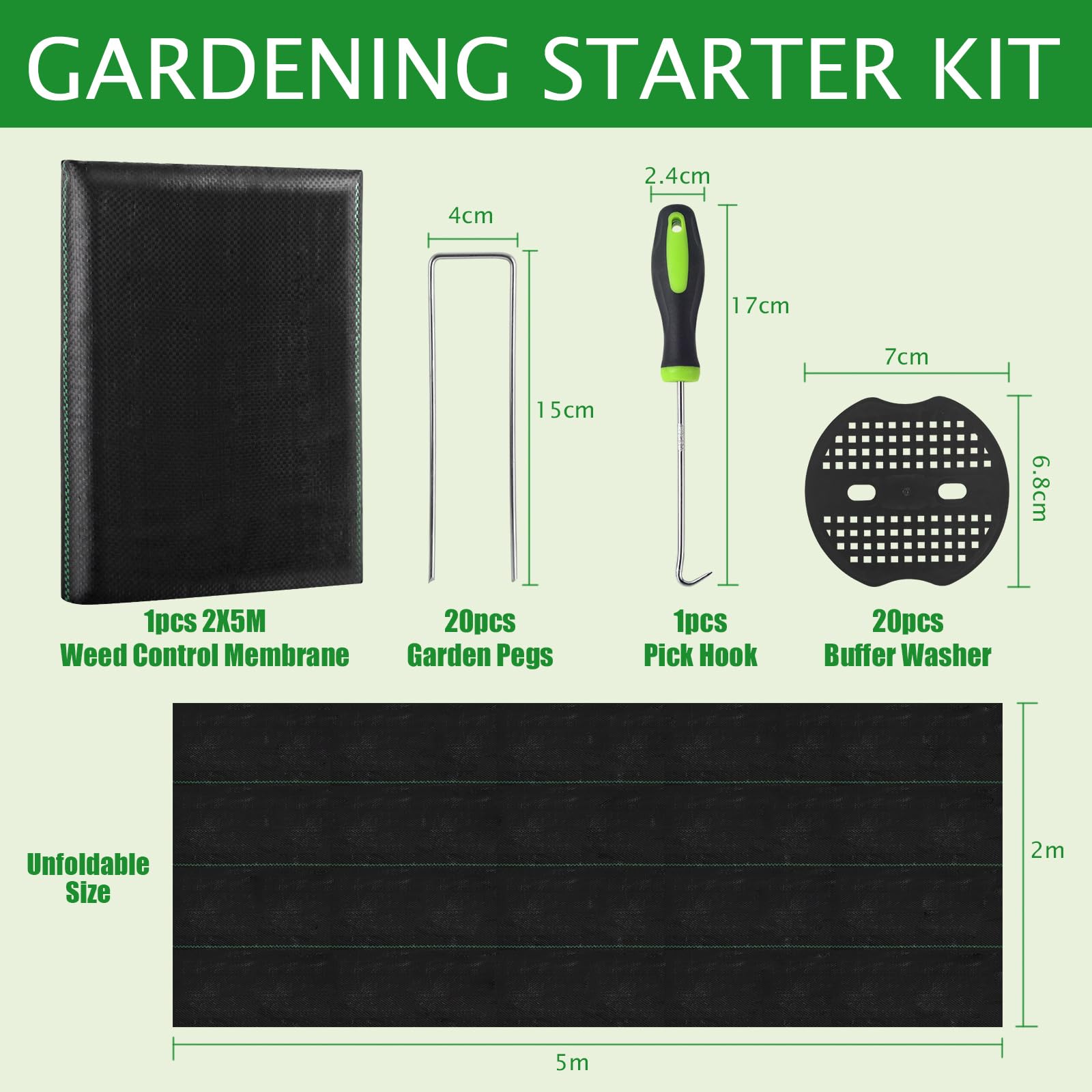 - Come with Installation Tool - 20 pieces of galvanized landscape staples, 15cm long, 3cm wide. U-shaped ground pegs are helpful for fixing the ground cloth. We also provide a pick hook and 20pcs plastic fixing washer. The fixing washer can make your project installation firmer, and the pick hook can pull the weed membrane pins out easily.
