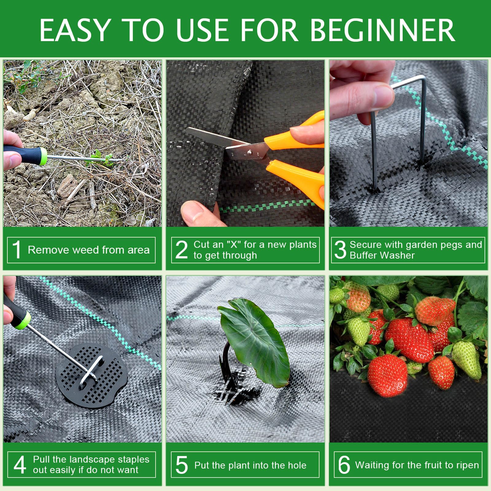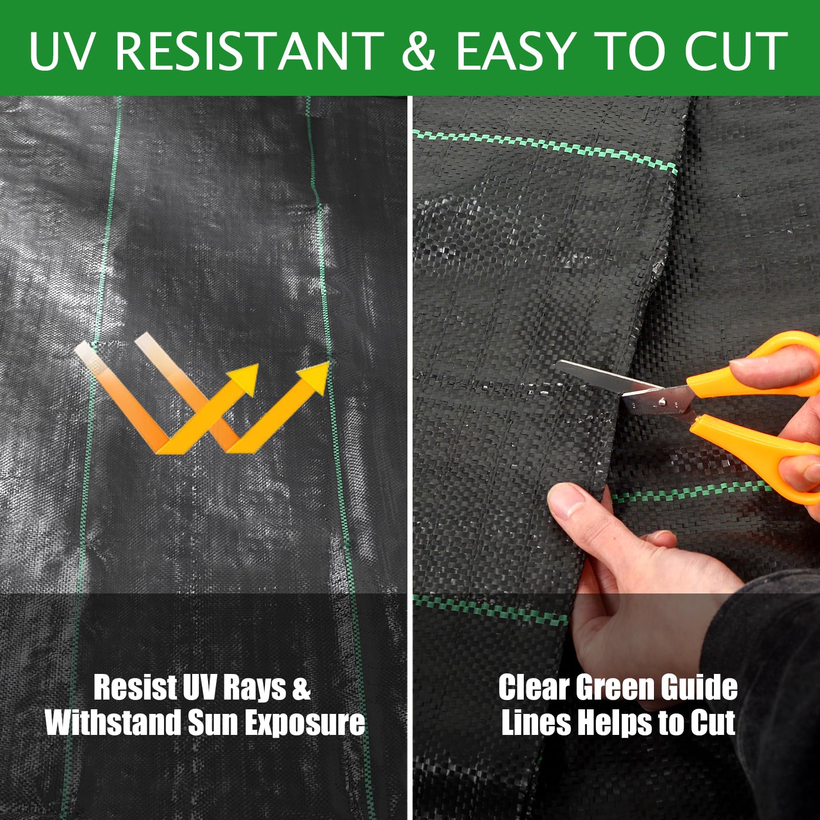 - Easy to Hand Cut - Our garden cloth weed barrier is effortless to cut and install. It is convenient to DIY the cloth size and shape to meet your different needs. The garden weed cloth also features green stripes for easy plant alignment.