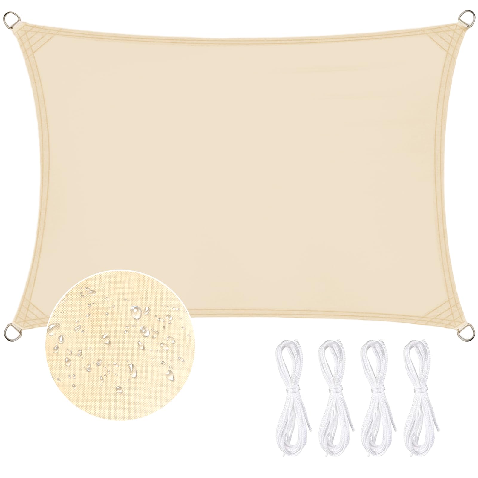 ZOUFRIDN Sun Shade Sail Waterproof 3m x 2m Rectangle Shade Sails Waterproof Outdoor Garden Patio Party Sunscreen Awning Canopy 98% UV Block With Rope for Outdoors, Garden, Patio, Yard, Party, Beige
