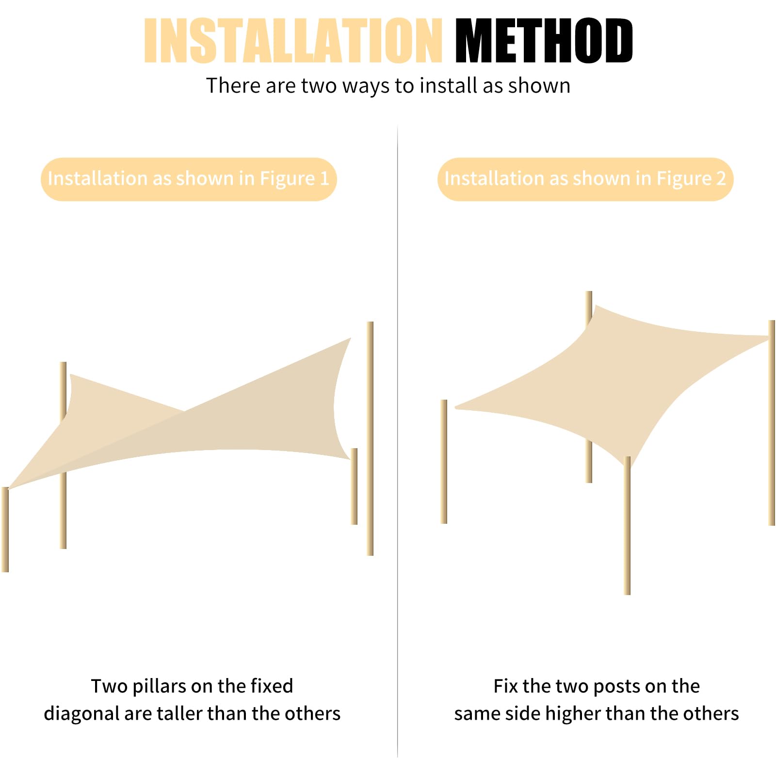 - 【Waterproof】Sun sail made of brand new high-density polyester with a waterproof coating. Therefore, sun sail shade can effectively play the role of the waterproof sail canopy, becoming a waterproof pergola cover, garden canopy, balcony canopy and so on. It has been treated to repel water, but not recommended to use in heavy rain, continuous heavy rain may cause slight water seepage